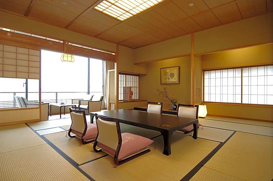 Fitted with tatami (woven-straw) flooring and traditional futon bedding. This room has a electric kettle, air conditioning and view.